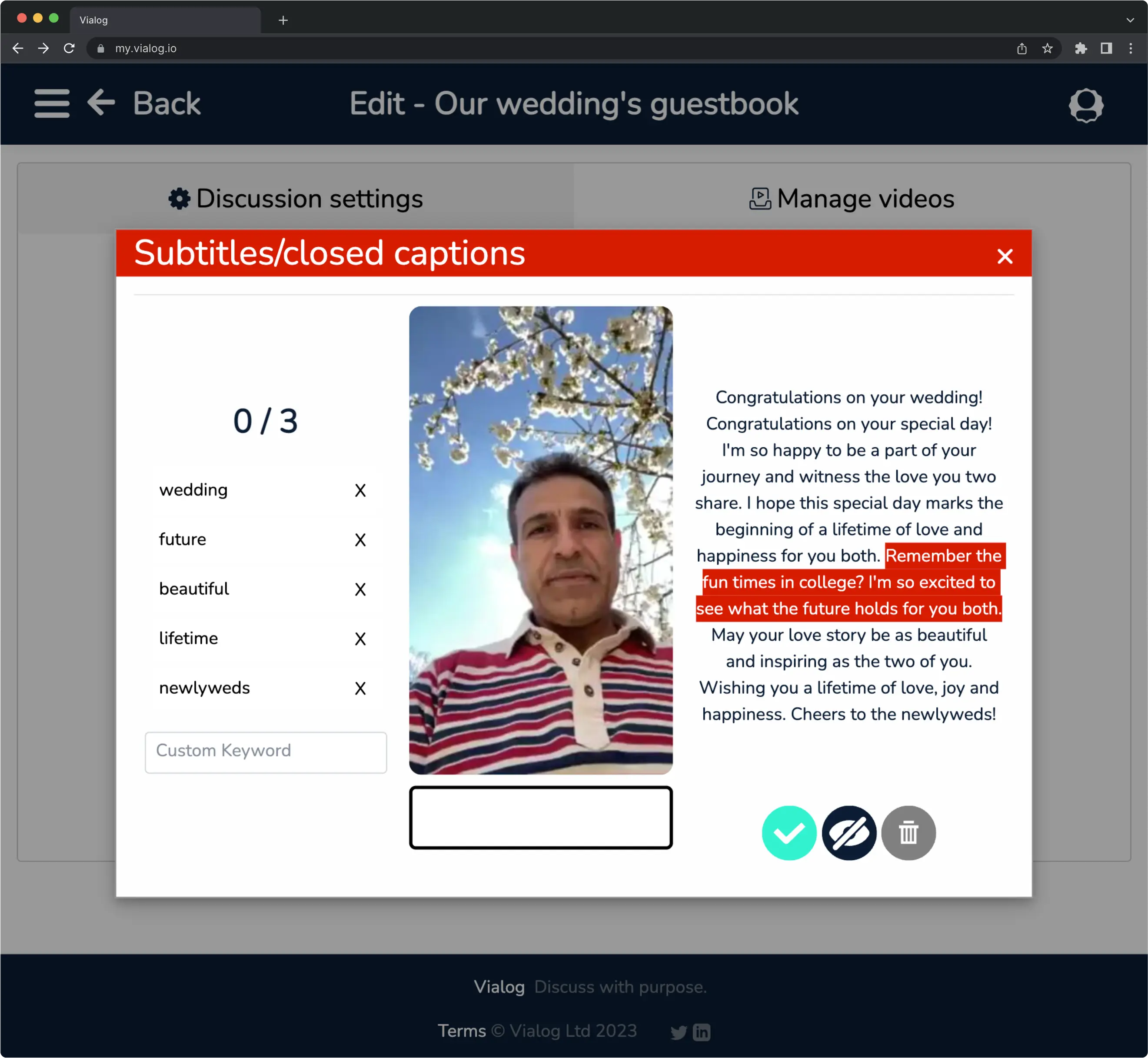 Let the wishes evolve into conversations. A new way for couples to respond to any or all videos.